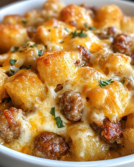 Air Fryer Cheesy Tater Tot and Sausage Bake – Crispy, Creamy & Irresistible!